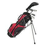 The Merchants of Golf Rezults Boys' Junior Golf Set is a perfect introductory golf club set for new players. Made for players between the ages of 9 and 12, this Boys' junior golf set includes all the clubs He will need to make it from the tee box to the green. With a lightweight, oversized driver, your young golfer will develop confidence when stepping up to the tee box. The two included irons feature deep cavities for more forgiveness on off-center hits. To improve your young player's short game, this golf set features a putter with alignment lines.