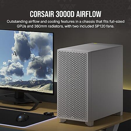 Corsair 3000D Airflow Mid-Tower Case (White, CC-9011252-WW) for