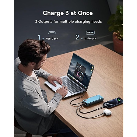 • 20,000 mAh battery bank w/ 60W USB-C to USB-C fast charging cable