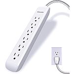 4' Philips 6 Outlet Surge Protector Power Strip w/ Designer Braided Power Cord & Flat Plug Extension (White) $7 + Free Shipping w/ Prime or on $35+