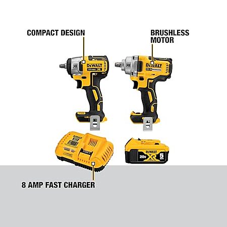 Model: DEWALT 20V MAX Impact Wrench, Cordless 2-Tool Combo Kit, 1/2-Inch Mid-Range and 3/8-inch Compact with 5ah Battery and Charger (DCK205P1)