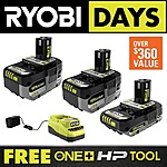 Ryobi One+ 18V HP 2Ah Battery + 2x 4Ah Battery w/ Charger + Select Bonus Tool