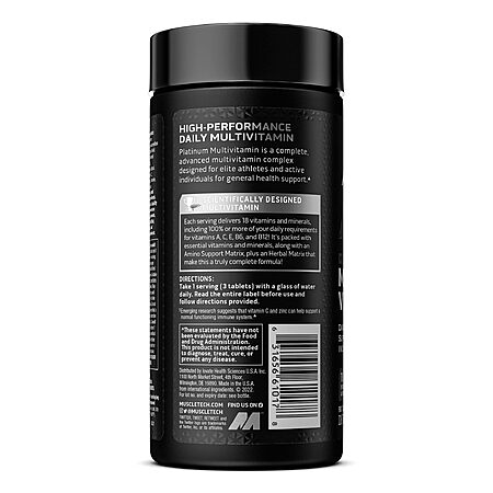 MuscleTech Platinum Multivitamin for Immune Support 18 Vitamins & Minerals Vitamins A C D E B6 B12 Daily Workout Supplements for Men 90 Ct $9.62