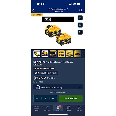 Select Lowe's Stores [link for reference only; store locator] have DeWALT 2-Pack 12V 5Ah Lithium-ion Battery Kit (DCB126-2) on sale for $37.22. Offer is valid In-Store only.