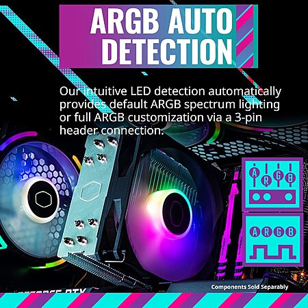 Model: Cooler Master Hyper 212 Spectrum V3 CPU Air Cooler, ARGB Sync, 120mm PWM Fan, 4 Copper Direct Contact Heat Pipes, 152mm Tall, Brackets AMD Ryzen AM5/AM4, Intel LGA1700/1200 (RR-S4NA-17PA-R1)