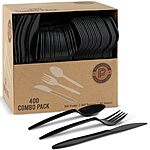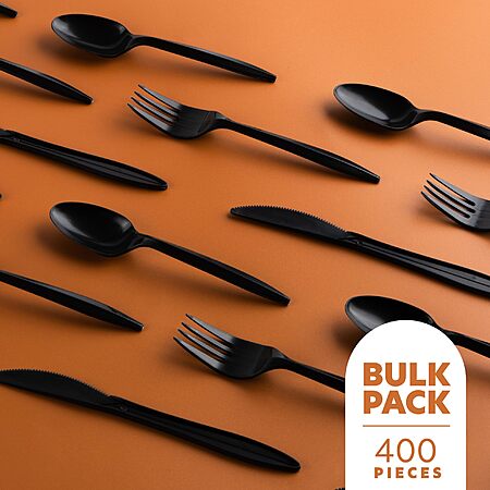 PLASTICPRO 400 Pack Disposable Plastic Utensils Assorted Colored Cutlery Combo Set Forks Spoons Knives Silverware, Black Plastic Cutlery for Parties. $8.49 reg price $14.99. 43% off-cheaper than the dollar store! with S & S-with prime free shipping! Black only. > now $8.99 w/S&S