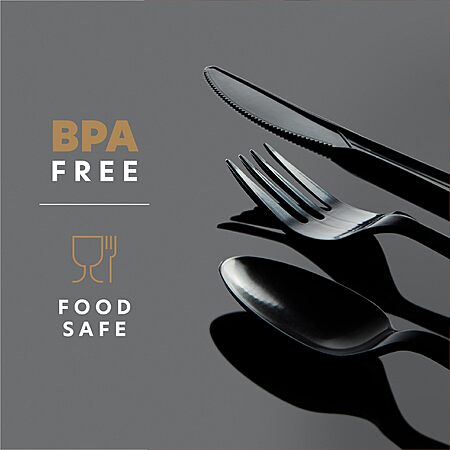 Medium weight plastic cutlery for parties, dinners, and more. Made with food safe and quality BPA free plastic.