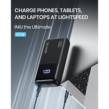INIU Power Bank, 25000mAh 65W USB C Laptop Portable Charger, PD QC Fast Charging 3-Output, power bank