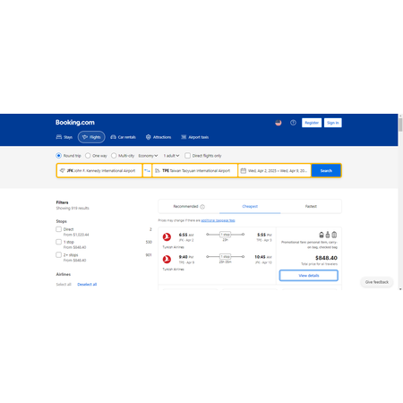 Turkish Airlines via Booking.com have round trip airfares travelling from New York (JFK) to Taipei Taiwan (TPE) for $849 making 1 stop in Istanbul, both ways. This promotional airfare is in economy and includes a personal item, a carry-on bag and 2 free checked bags.