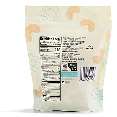10-Oz 365 by Whole Foods Market Organic Dry Roasted & Salted Cashews for $4.77 -