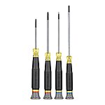 Klein Tools 4-Piece Precision Screwdriver Set includes 4 Tamperproof TORX® screwdrivers to help get the job done when precision is key. This tool has all the quality and standards of full size screwdrivers with precise finger control for turning blades in tight spaces. Screwdrivers also sold separately.