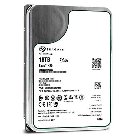 18TB Seagate Exos X20 3.5" 7.2K RPM SATA Hard Drive (Recertified Drive)