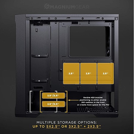 • Up to 360mm Radiator support for liquid cooling builds and vertical GPU mounting with optional bracket (sold separately)
