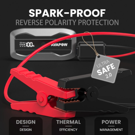 AVAPOW JS001 2000A Peak Portable Battery Jump Starter w/ USB QC 3.0 & DC Output