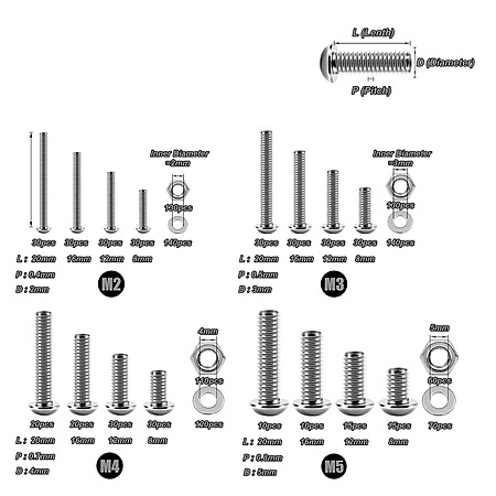M2-M5 Stainless Steel Socket Head Screw Assortment Kit with Washers, Nuts, and Hex Wrenches (1290 Pieces) $20