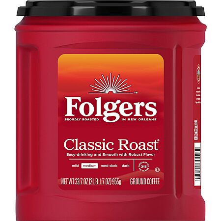Select Accounts: 6-Pk 33.7-Oz Folgers Classic Roast Ground Coffee (Medium Roast)