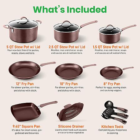 Amazon Prime Members: 20-Piece NutriChef Non-Stick Kitchen Cookware, Bakeware, Pots & Pans Set (Brown) $104.50 + Free Shipping