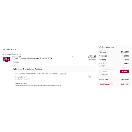 LG has for LG EPP/EDU Discount Members: 77" LG OLED evo C4 4K Smart TV (2024, OLED77C4PUA) on sale for $1898.99 when you follow the instructions below. Shipping is free.