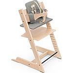 - Includes Tripp Trapp Chair, Tripp Trapp Baby Set with five-point harness and gliders, cushion and tray