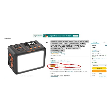 Portable Power Station 99Wh - 150W Small Solar Generator with 3500+ Cycles LiFePo4 Battery (LFP), PD18W, USB QC3.0, 2 110V AC Outlet, Outdoor LED for CPAP Home Camping Emergency Backup