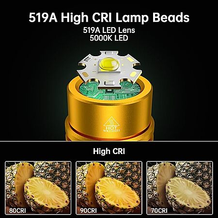 - The newly upgraded WK03 Mini Flash Light uses 519A high CRI lamp beads, CRI 90+