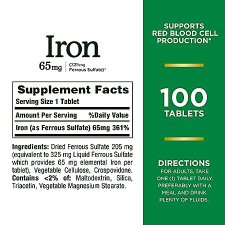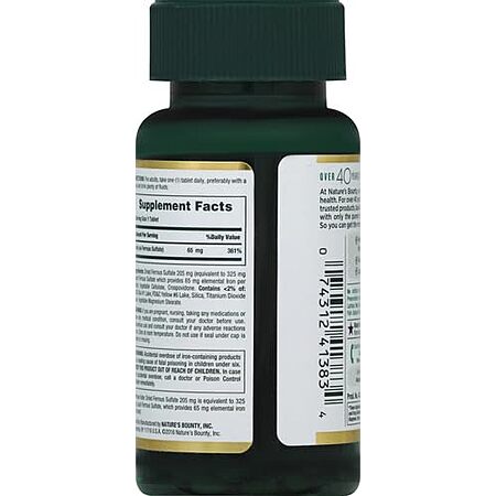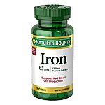 [S&S] $2.08: 100-Count Nature's Bounty Iron 65mg, 325 mg Ferrous Sulfate (Unflavored) at Amazon