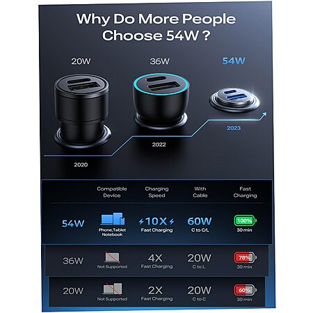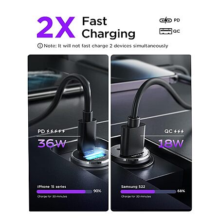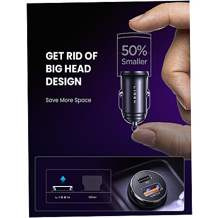 LISEN 54W 2-Port USB-C PD QC 3.0 Fast Charging Car Charger Adapter w/ USB-C to USB-C and Lightning Cable on sale for $7.99 - $0.56 off when you apply promo code
