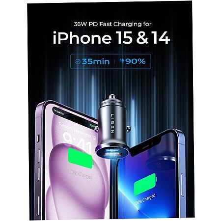 No longer available:- Lisen Direct via Amazon has its LISEN 90W 2-Port USB-C Fast Charging Car Charger Adapter w/ USB-C to USB-C and Lightning 5' Coiled Cable on sale for $17.83 - 12% when you 'clip' the coupon on the product page - $6.24 when you apply promo code 357MN34J at checkout = $9.45. Shipping is free w/ Prime or on orders of $35 or more.