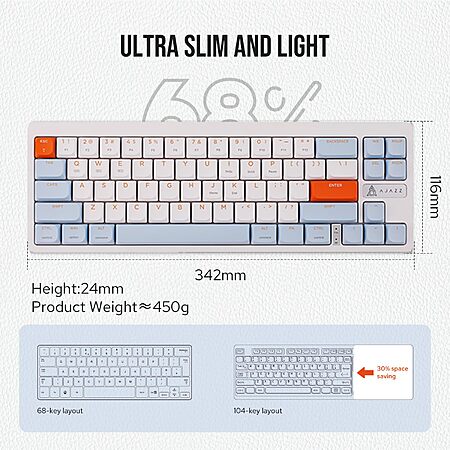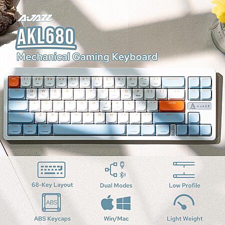 AJAZZ AKL680 65% Wireless Dual Mode BT 5.1/2.4Ghz Low Profile Mechanical Keyboard $17.99