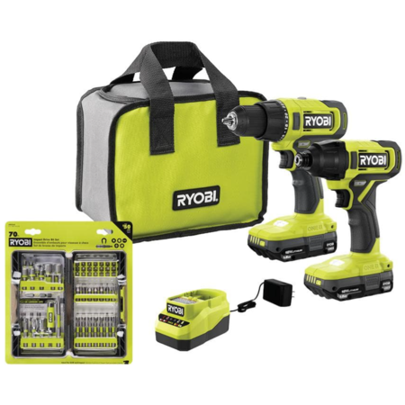 RYOBI 18V Combo Kit w/ Drill/Driver, Impact Driver, (2) 1.5 Ah Batteries, Charger, & 70-Piece Driving Kit $110, 1/2" impact and oscillating tool kit, $129, FS + more