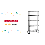 Limited-time deal for Prime Members: Amazon Basics 5-Shelf Adjustable, Heavy Duty Storage Shelving Unit on 4'' Wheel Casters, Metal Organizer Wire Rack, 30" L x 14" W x 6 - $51.99