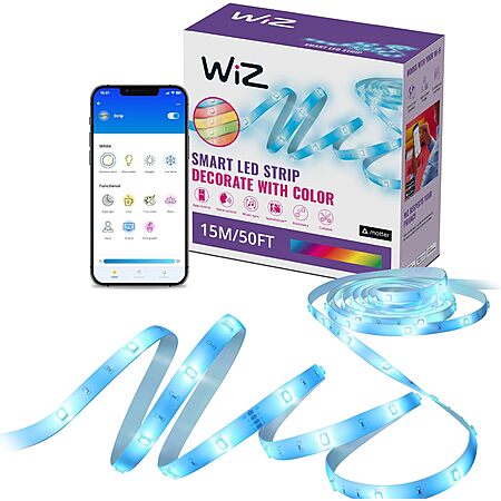 Limited-time deal for Prime Members: WiZ RGB LED Light Strip – 50 ft Cut to Fit, 16 Million Colors + Shades of White - $19.99