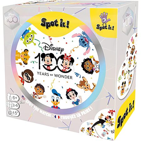 Model: Spot It! Disney 100 Years of Wonder Card Game | Fast-Paced Symbol Matching Observation Fun Family Game for Kids and Adults | Age 6+ | 2-8 Players | Avg. Playtime 15 Minutes | Made by Zygomatic
