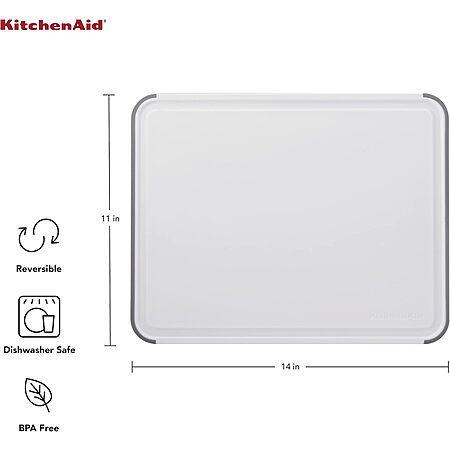 Prime Members: 11" x 14" KitchenAid Classic Plastic Non-Slip Cutting Board w/ Perimeter Trench (Gray/White) $8 + Free Shipping