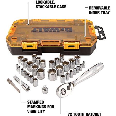 34-Piece DeWalt 1/4" & 3/8" Drive Socket Set (SAE/Metric, DWMT73804) for