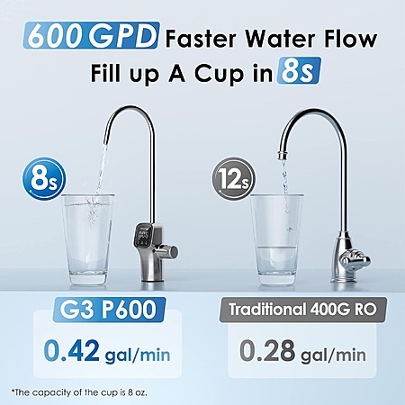 Model: Waterdrop G3 Reverse Osmosis System, Tankless RO Water Filtration Systems, Under Sink, NSF Certified, TDS Reduction, 400 GPD, Smart LED Faucet, UL Listed Power, USA Tech