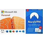 Microsoft 365 Personal 15 Months (1-User) + NordVPN 1-Year Subscription (6-Devices) $37.99 (Digital Delivery)