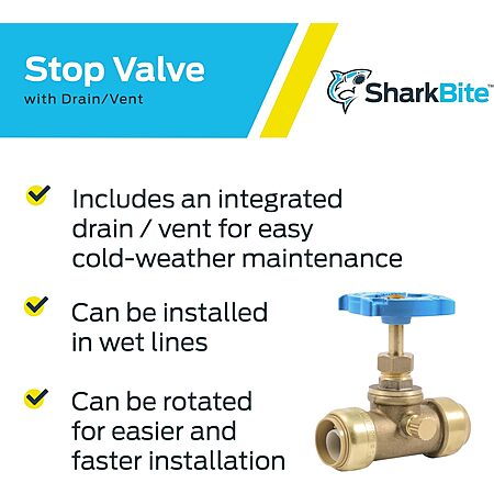 Prime Members: SharkBite 3/4" Push-to-Connect Brass Stop Valve with Drain Vent