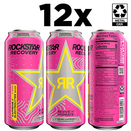 12-Pack 16-Oz Rockstar Recovery Energy Drink (Raspberry Lemonade or Berryade)