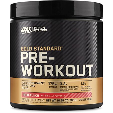 Model: OPTIMUM NUTRITION Gold Standard Pre-Workout with Creatine, Beta-Alanine, and Caffeine for Energy, Flavor: Fruit Punch, 30 Servings
