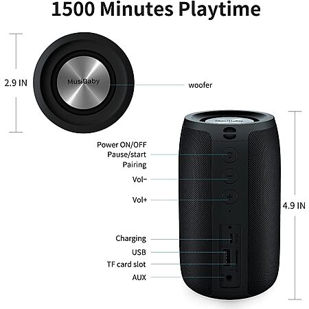 Bluetooth Speaker,MusiBaby Speaker,Wireless,Outdoor,Waterproof,Portable Speaker,Dual Pairing,Bluetooth 5.0,Loud Stereo,Booming Bass,1500 Mins Playtime for Home&Party,Gift - $24