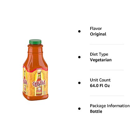 Model: Cholula Original Hot Sauce, 64 fl oz - One 64 Fluid Ounce Bulk Container of Hot Sauce with Mexican Peppers and Signature Spice Blend, Perfect with Tacos, Eggs, Wings, Chicken and More