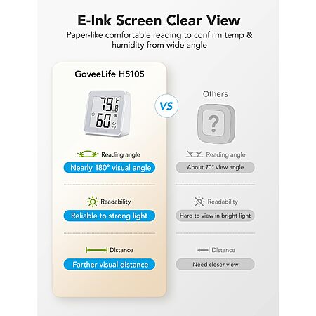 Prime Members: GoveeLife E-Ink Bluetooth Thermometer Hygrometer, Smart Digital Indoor Wireless Temperature Humidity Sensor Govee, 1-Pack: $8.32 AC or 2-Pack $17.91 AC w/ Prime FS