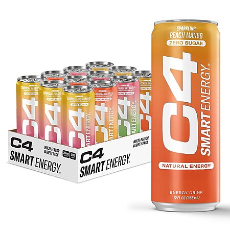 Amazon[amazon.com] has for Prime Members: 12-Pack 12-Oz C4 Smart Energy Drinks Variety Pack (Tropical Oasis) for $11.39 when you check out with Subscribe & Save. Shipping is free w/ Prime.