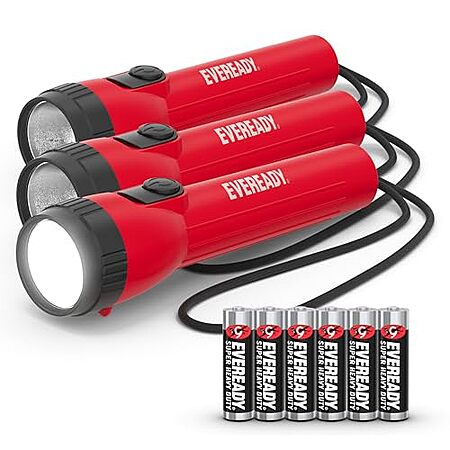 Amazon has 3-Pack Eveready 25-Lumen LED Handheld Flashlights w/ 6x AA Batteries (Red; EVLC1L2A13A, LC1L2A1) on sale for $6.50 when you clip the 50% Off coupon on the page. Shipping is free w/ Prime or on $35+ orders.