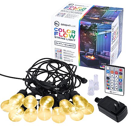 33$, 40 percent off BRIGHTLUX 24ft Color Flow String Light | Outdoor Lights with Dimmable White, Color Changing, Music Sync Modes $33