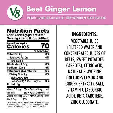 46-Oz V8 Beet Ginger Lemon 100% Vegetable Juice