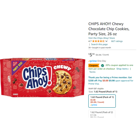 CHIPS AHOY! Chewy Chocolate Chip Cookies, Party Size, 26 oz $4.78