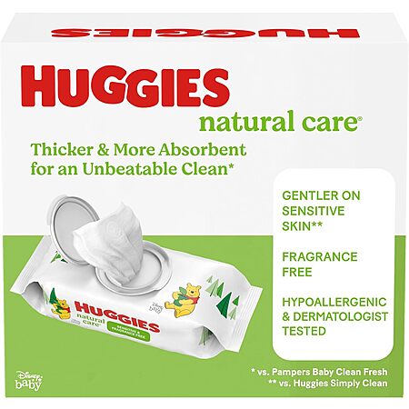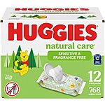 Huggies Natural Care Sensitive Baby Wipes, Unscented, Hypoallergenic, 99% Purified Water, 12 Flip-Top Packs (768 Wipes Total), Packaging May Vary - $15.24