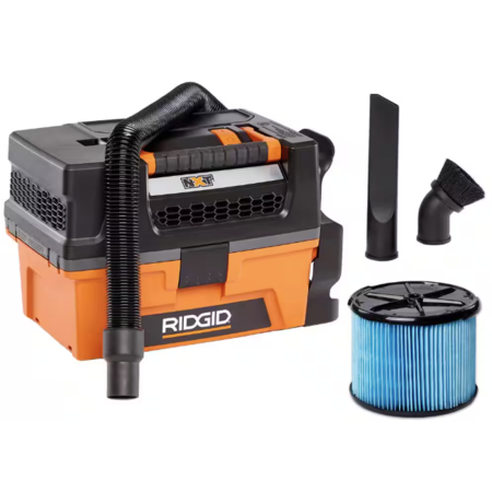 RIDGID 3 Gallon 5.0 Peak HP NXT Wet/Dry Shop Vacuum with Filter, Expandable Locking Hose and Accessories $99